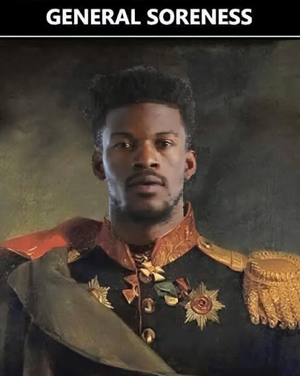在勇士官方宣布这一消息前,巴特勒已经更新社媒,晒出自己的PS“将军照”,配上了大量勇士比赛照,并写道:“44/82,我很快就会回来!”据悉,巴特勒此举一语双关,明面上是一位将军名字叫Soreness,但也可以翻译成“全身酸痛”,放在NBA伤病报告里,基本意思是球员只是身体疲劳、有点不舒服,通常意味着没有大事。